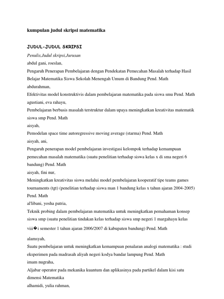 PDF) Judul-Judul Skripsi Matematika | desy setiowati - Academia.edu