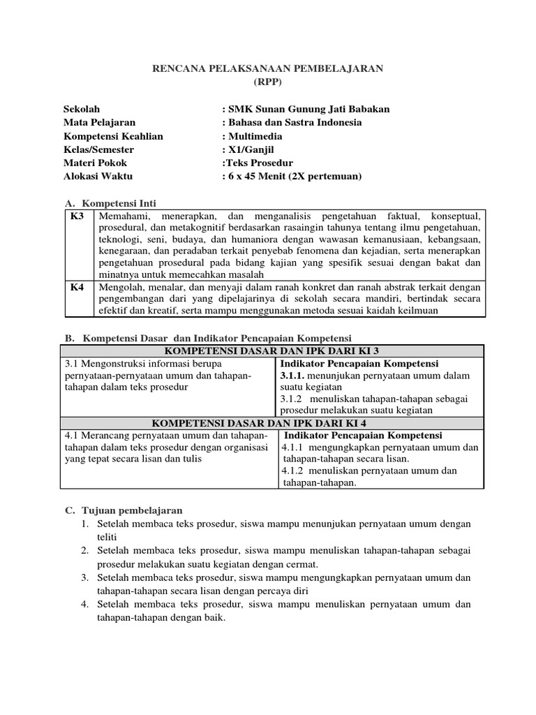 RPP B. Indo Kelas 11 Rev 2018 3.1 Dan 4.1 Teks Prosedur