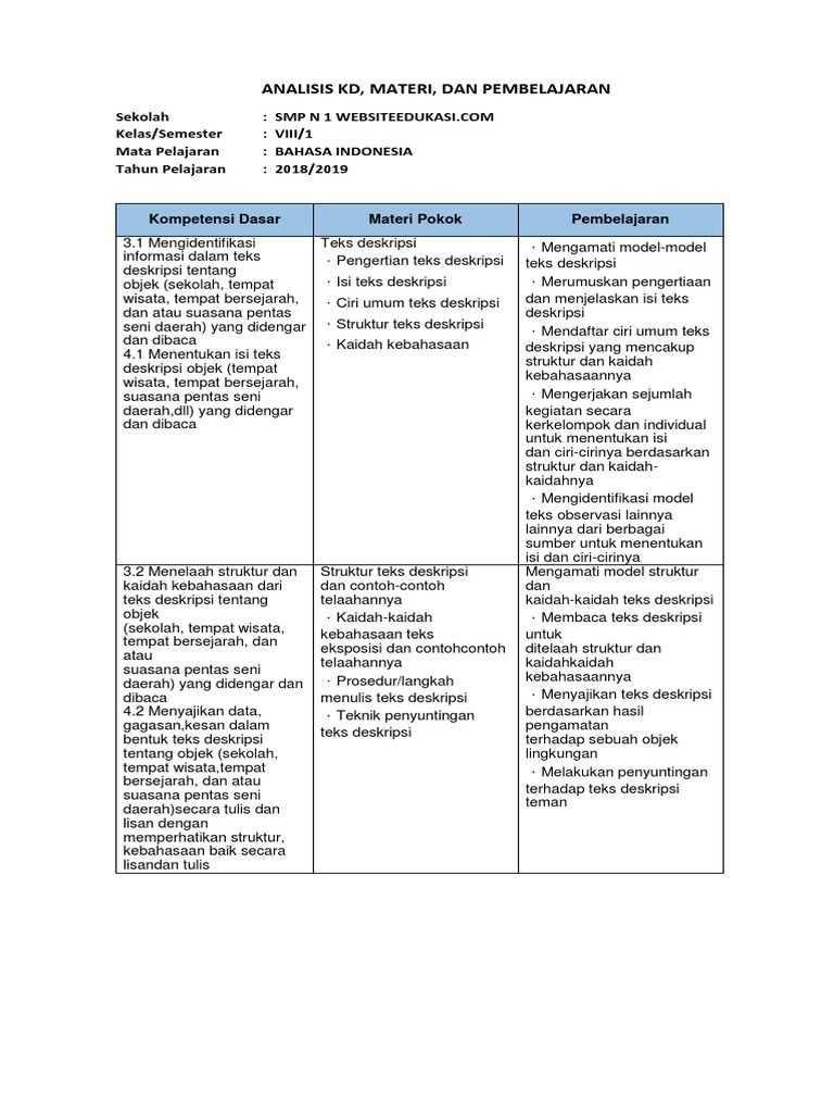DOC) RPP BAHASA INDONESIA KELAS VII BAB 3 TEKS PROSEDUR.docx | Asisten Nur - Academia.edu