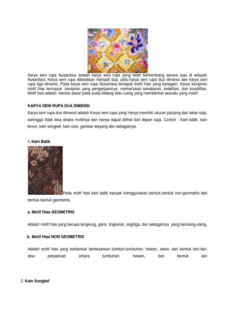kain batik termasuk contoh karya seni …dimensi - Brainly.co.id