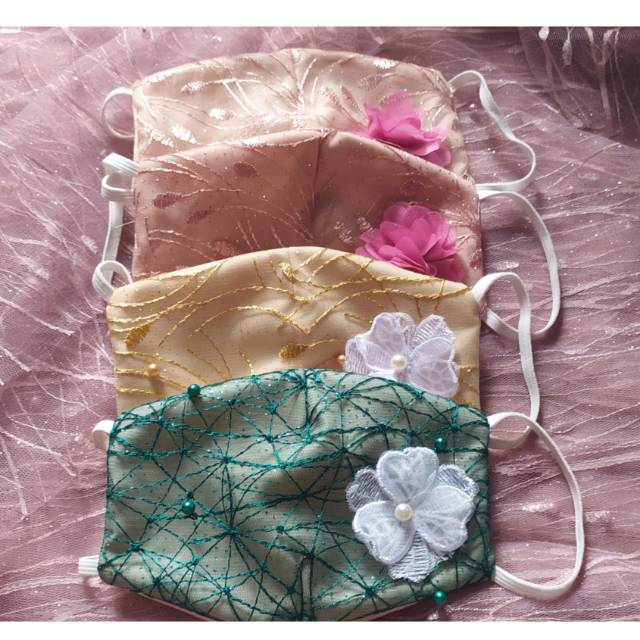 Masker Kain Tulle Brokat Hias Bunga 3d Cantik Pink - Masker Kain Hias Cantik - Masker Brokat Cantik | Lazada Indonesia