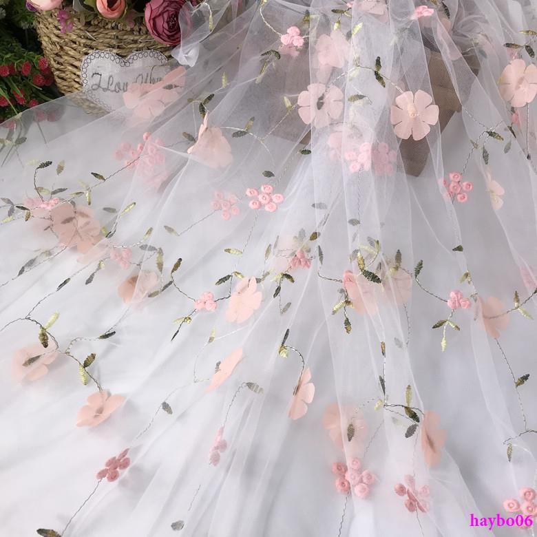 Pengiriman gratis lebar 130 cm 3D bordir sifon bunga, Kain renda, Kain kain buatan tangan diy dress jala|lace embroidery fabric|lace fabric ribbonlace fabrics uk - AliExpress