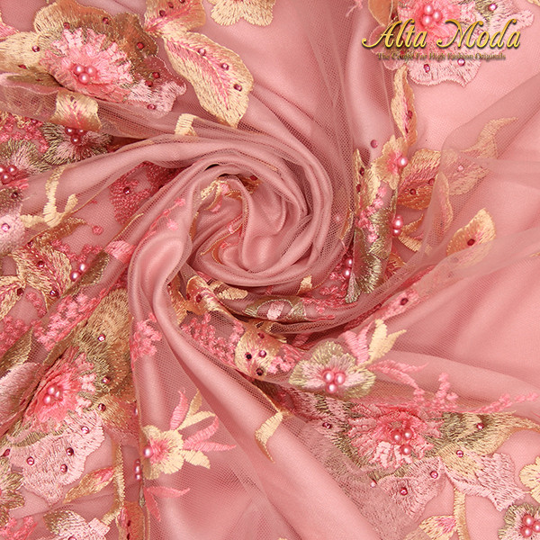 Jual Alta Moda Kain Tile Bordir 3D Pearl Bunga-Pink Pale Yellow (1M) - Jakarta Selatan - altamoda | Tokopedia
