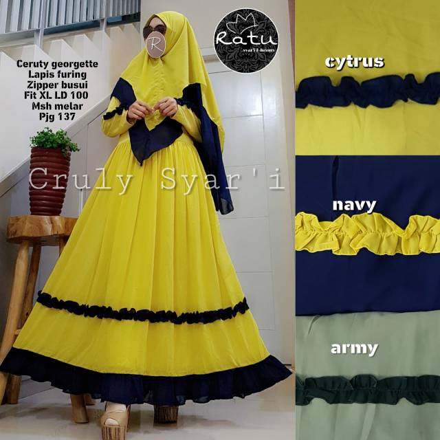 Nikesha Syari by Azzahra Set gamis syari bahan ceruti ultimate. Dress lapisan furing kaos hadget Uk all size fit to … | Model pakaian, Model baju wanita, Pakaian