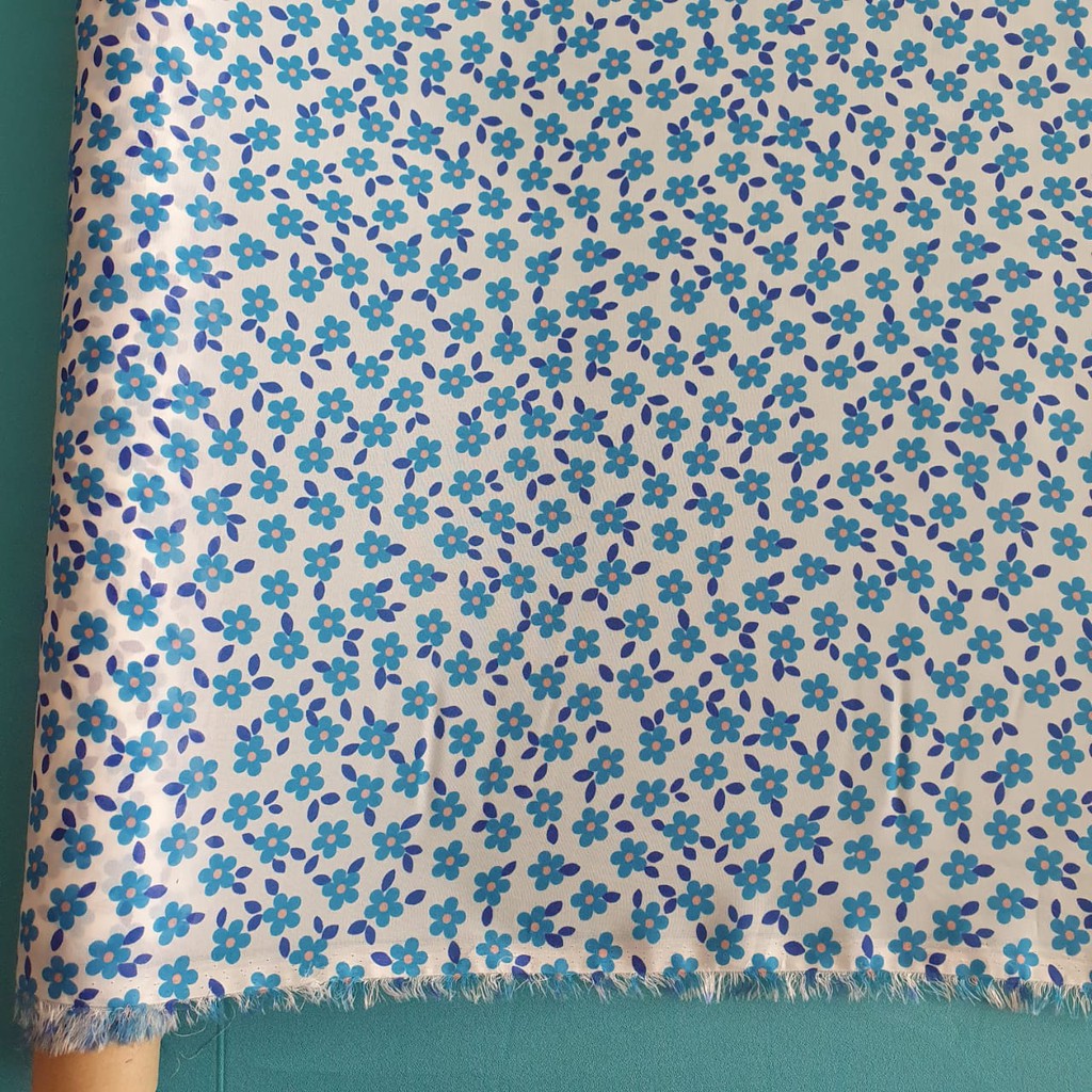 kain chiffon/sifon motif bunga biru dasar putih lebar 1.5 m …