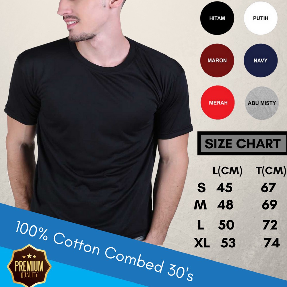 Kaos Polos Hitam Cotton Combed 30s Premium Size S, M, L, XL 4 Warna | Shopee Indonesia
