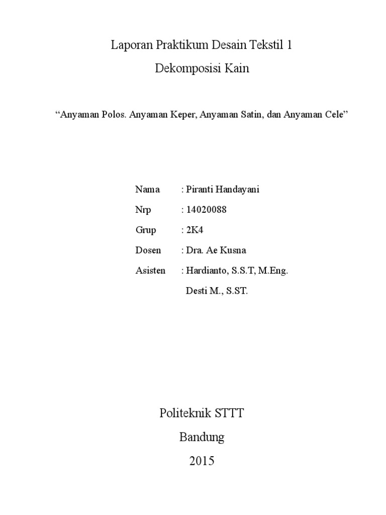 LAPORAN PRAKTIKUM DESAIN TEKSTIL DEKOMPOSISI KAIN_Riva.docx - LAPORAN PRAKTIKUM DESAIN TEKSTIL DEKOMPOSISI KAIN oleh Nama Riva Pramathana P N NPM | Course Hero