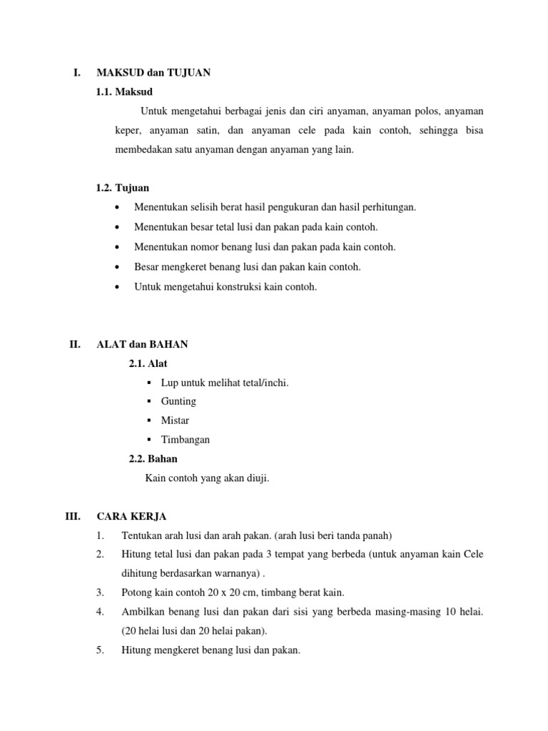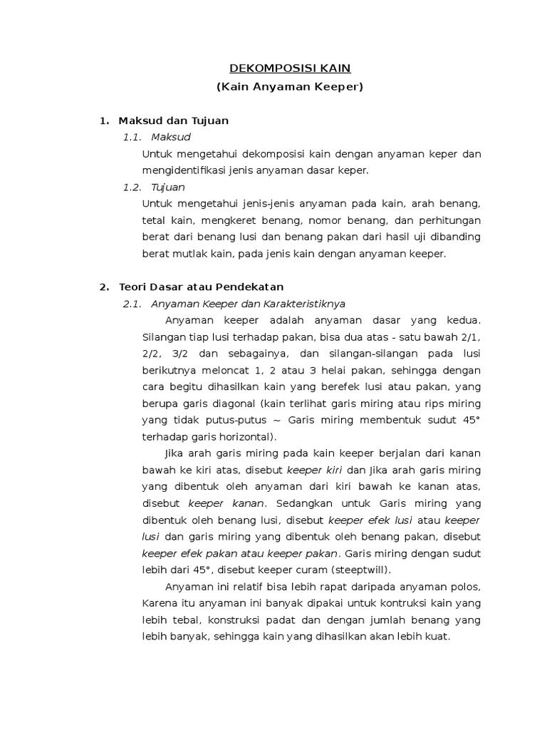 Dekomposisi Kain Anyaman Keper: I. Maksud Dan Tujuan 1.1 Maksud