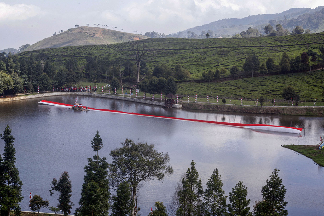 Kain Merah Putih Berukuran 100 Meter Terbentang di Telaga Saat