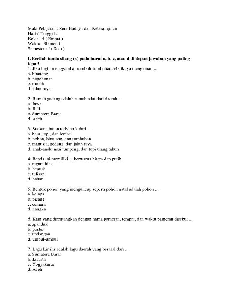 Lengkap - 40+ Contoh Soal UTS Seni Budaya kelas 4 SD/MI dan Kunci Jawaban - Bospedia