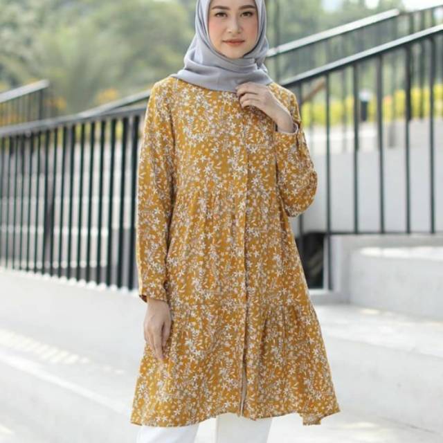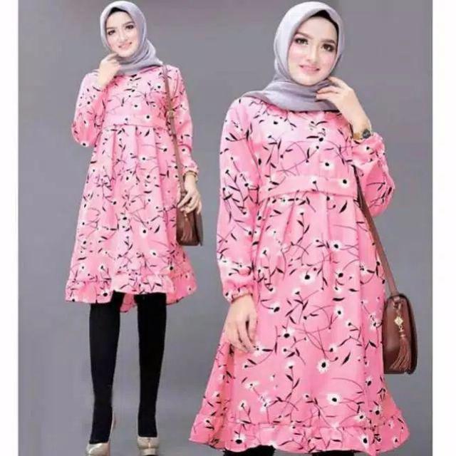Baju tunik atasan muslim deasy tunik motif bunga bahan kain katun | Shopee Indonesia