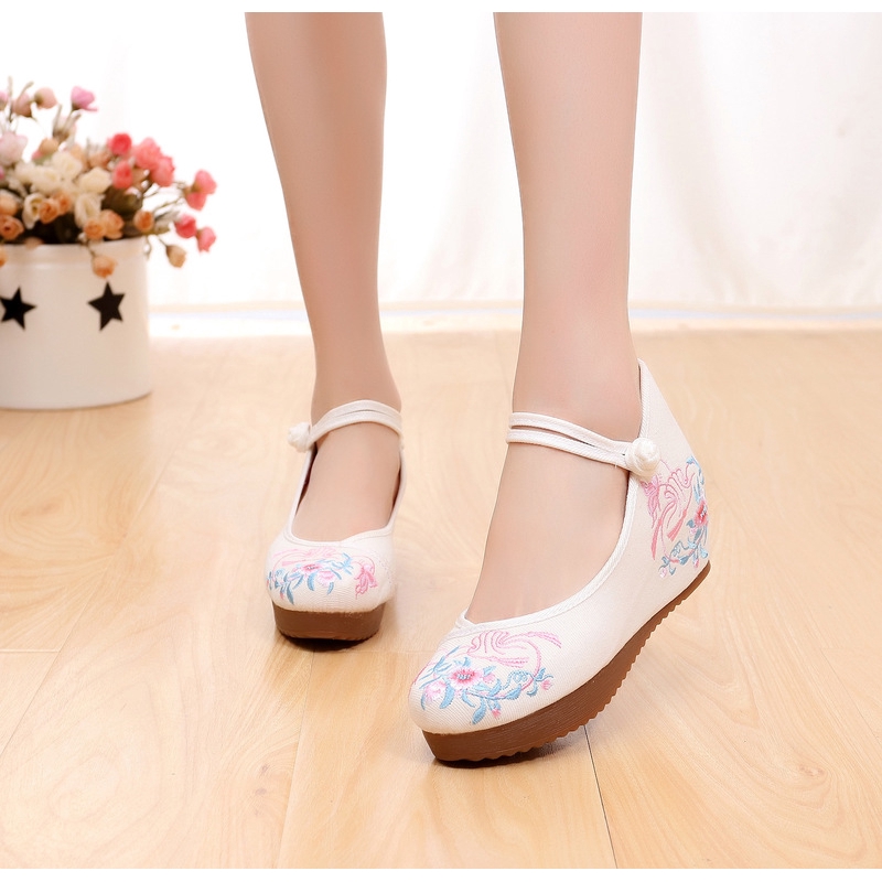 Hanfu Depan renda-up sepatu kain bordir sandal wedges import terbaru | Shopee Indonesia