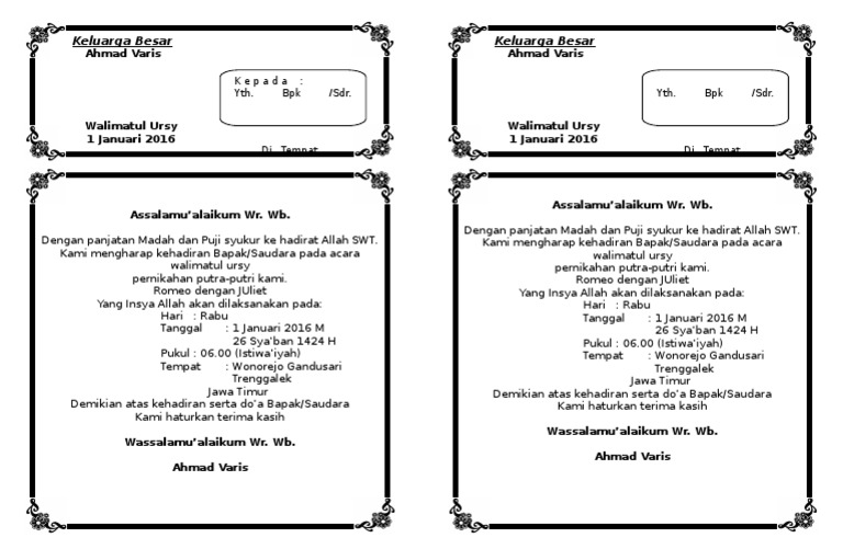 Contoh Undangan Walimatul Ursy Pernikahan Doc – pemandangan-kanfas