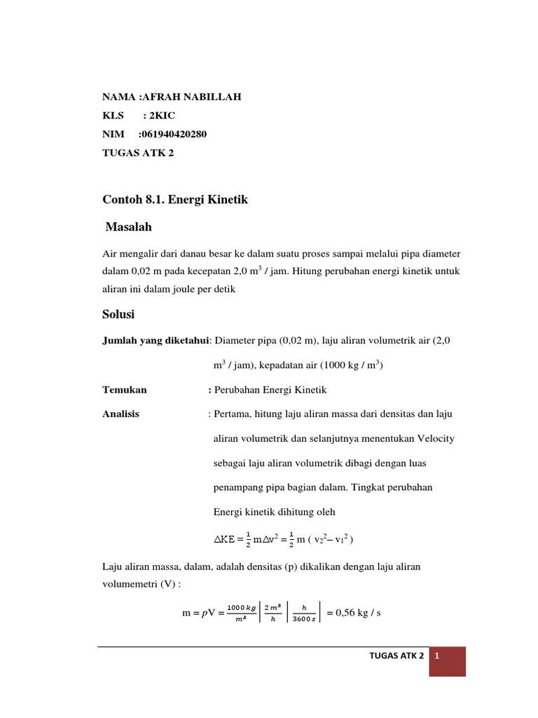 Contoh 8.1. Energi Kinetik Masalah: Tugas Atk 2