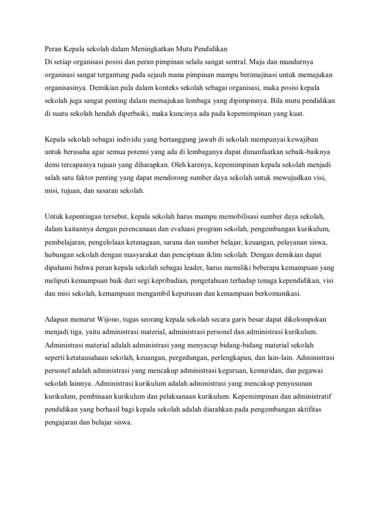 PDF) PERAN KEPALA SEKOLAH DALAM PERUBAHAN MENUJU PENGEMBANGAN SEKOLAH | gatot atmadji - Academia.edu