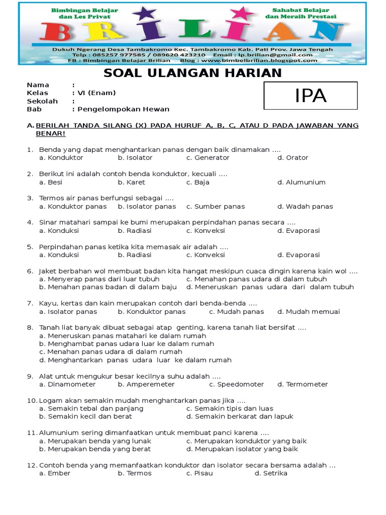 Soal IPA Kelas 6 SD BAB 5 Hantaran Dan Perpindahan Panas Benda