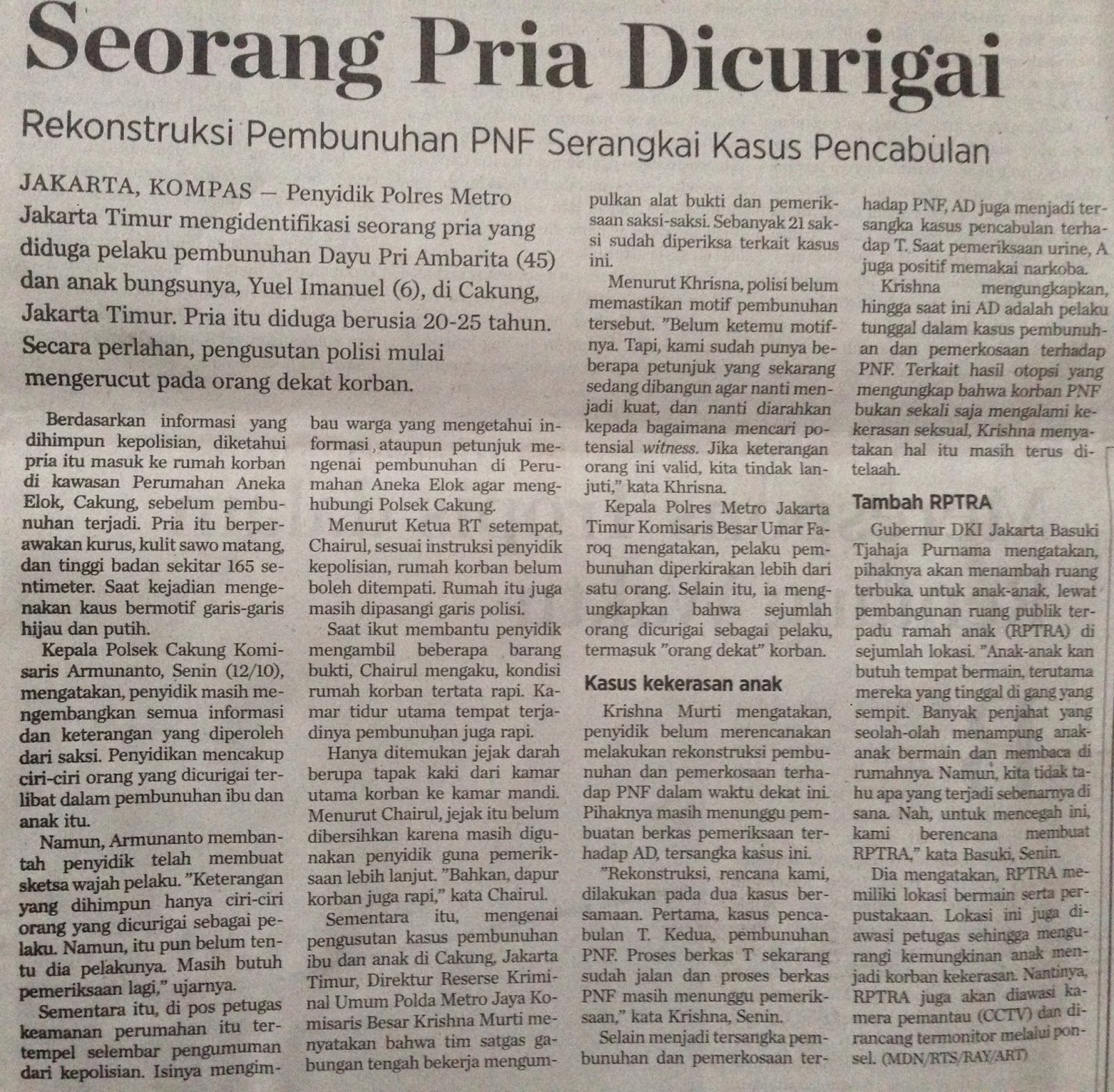 Kliping Koran KOMPAS - Seorang Pria Dicurigai, Rekonstruksi …