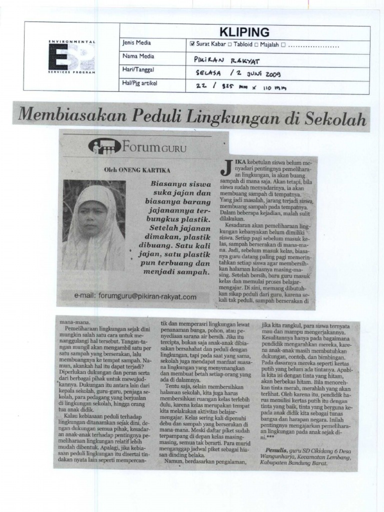 Membiasakan Peduli Lingkungan di Sekolah: Kliping