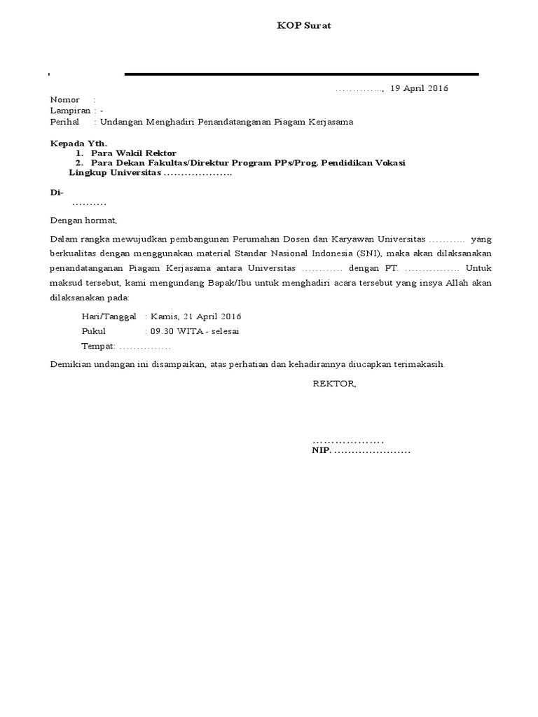 Contoh Surat Undangan Menghadiri Penandatangana PKS