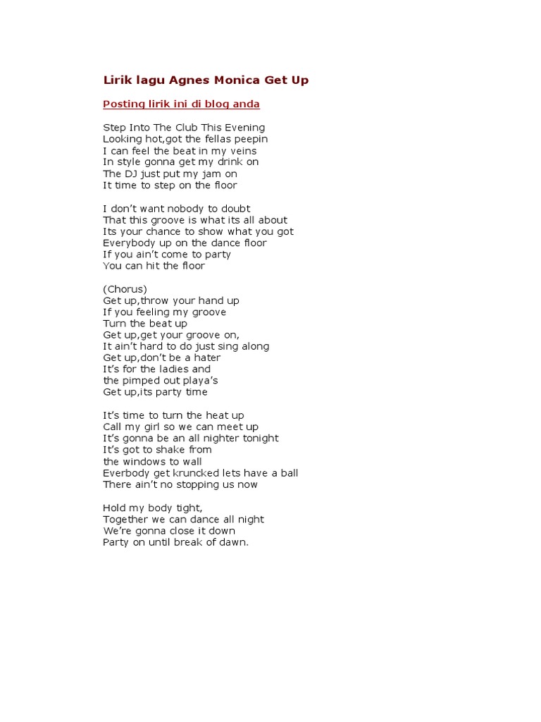 Lirik Lagu Agnes Monica Get Up