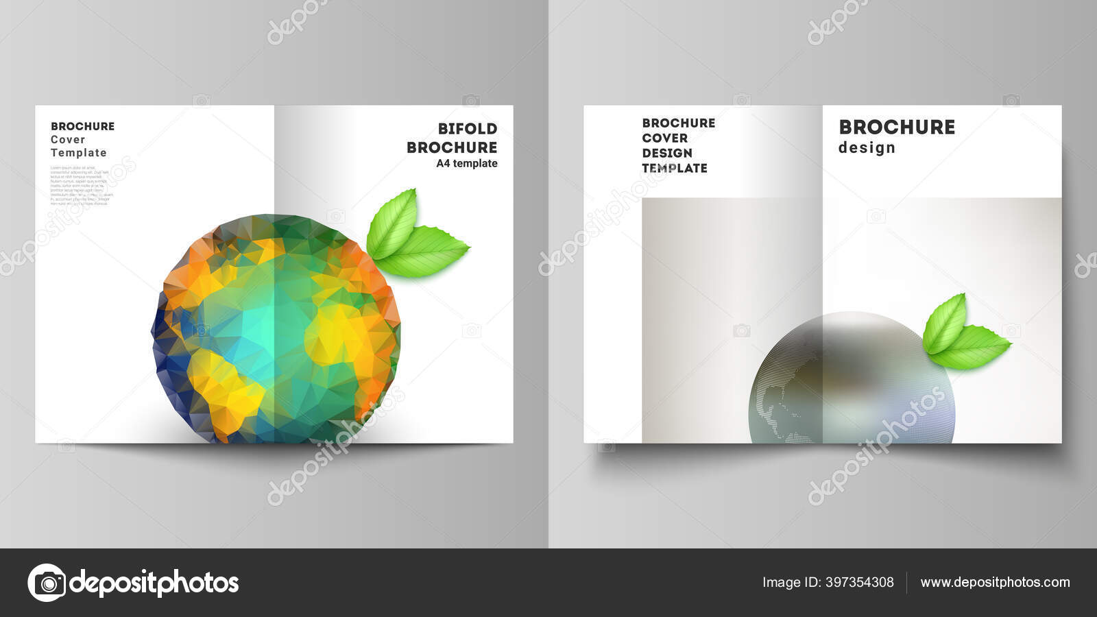 Vektor layout dari dua format A4 cover mockups desain template untuk brosur bifold, flyer, cover design, book design, brosur cover. Selamatkan konsep planet Bumi. Konsep global pembangunan berkelanjutan. — Stok Vektor ©