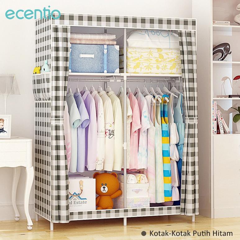 KODE 3900] Ecentio Lemari pakaian rak baju lemari kain rak besi lemari portable anak bayi | Shopee Indonesia