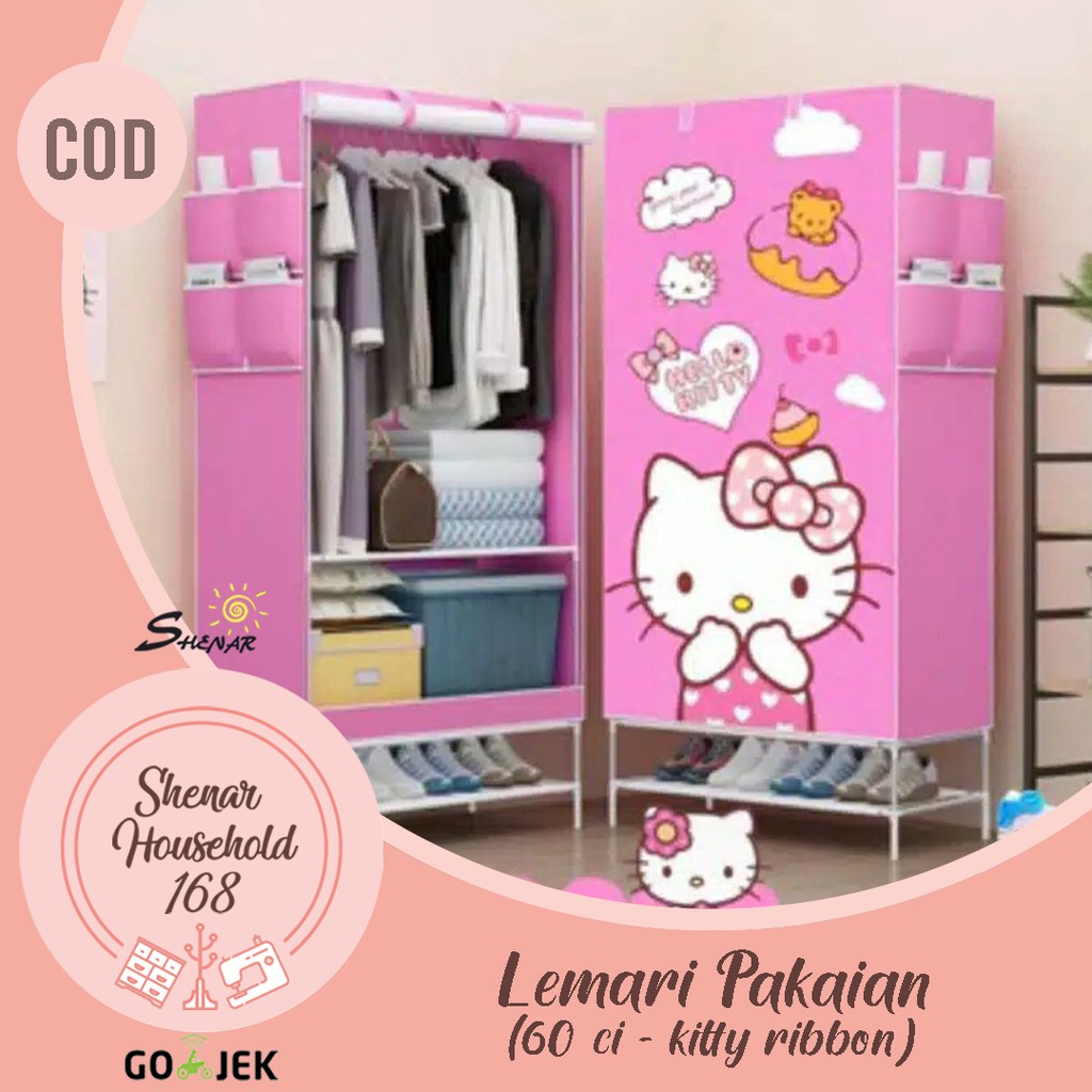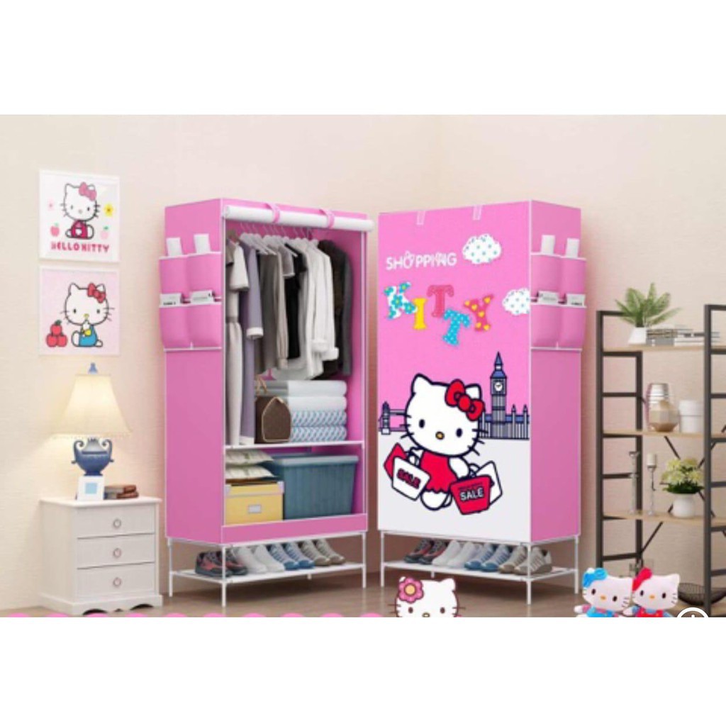 3KG) SHENAR LEMARI KAIN PORTABLE/LEMARI PAKAIAN BONGKAR PASANG/RAK BAJU MOTIF HELLO KITTY | Shopee Indonesia