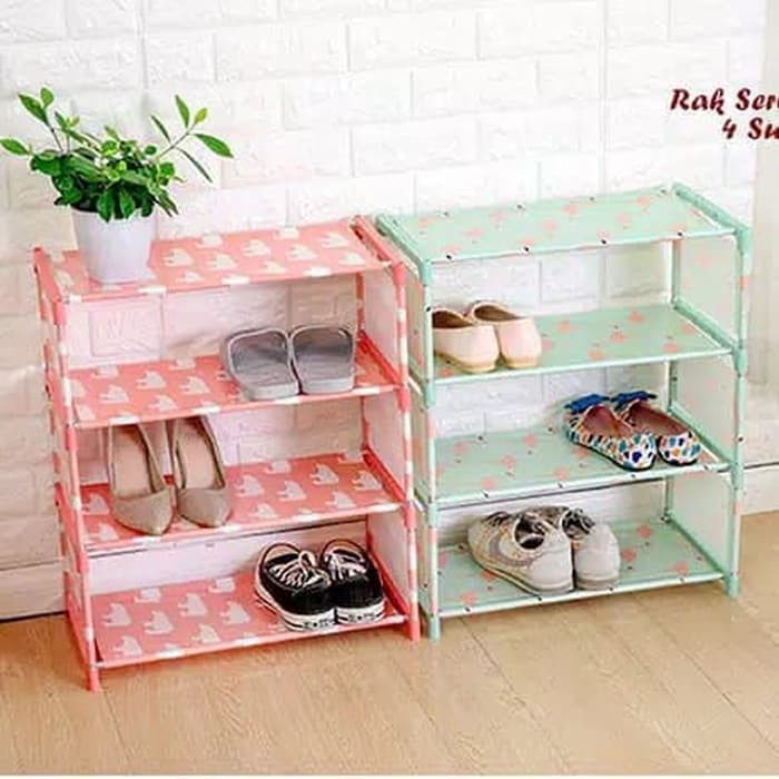 Rak Sepatu / Rak Susun Kain 4 Tingkat Lemari Susun Portable | Shopee Indonesia