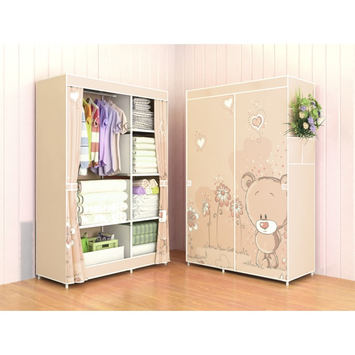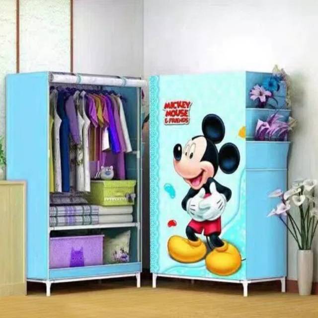 Lemari Rak Baju Pakaian Kain Portable Minimalis Bongkar Pasang Lipat Rakit Murah Karakter anak 3 | Shopee Indonesia