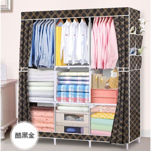 Star Seller» v-4 6676 Lemari Pakaian Lebar Rak baju lemari kain rak besi lemari portable | Shopee Indonesia