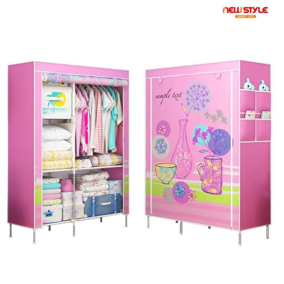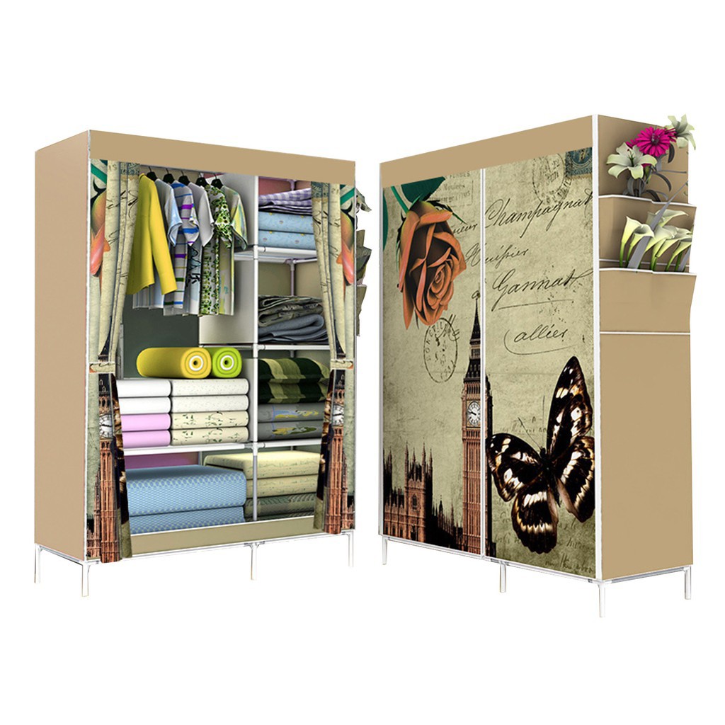 Lemari kain Non woven| lemari 2 sisi | lemari rak pakaian/ boneka portable | tempat pakaian wanita | Shopee Indonesia