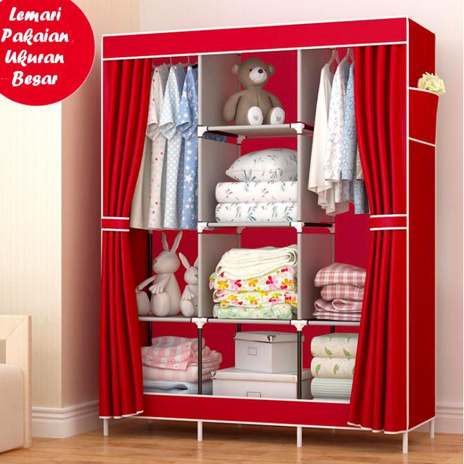 LEMARI PAKAIAN PORTABLE BESAR / LEMARI KAIN / LEMARI BAJU PORTABLE BIG | Shopee Indonesia