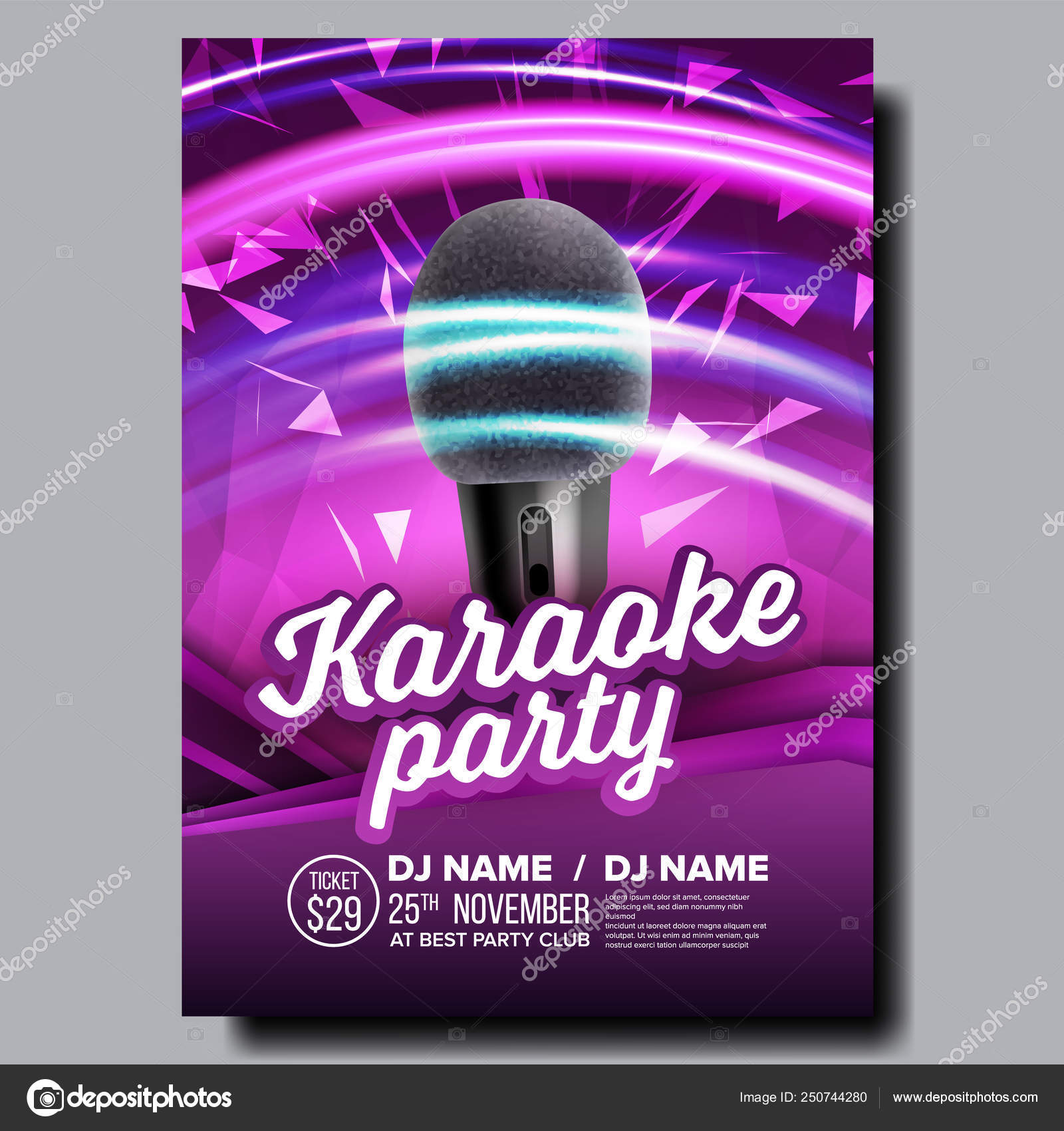 Karaoke Poster Vector. Dance Karaoke Music Event. Technology Symbol. Festival Concept. Live Singer. Realistic Illustration — Stock Vector © pikepicture #250744280