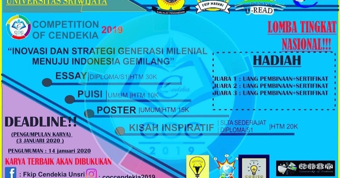 PORTAL KOMPETISI DAN BEASISWA: COMPETITION OF CENDEKIA 2019 Universitas Sriwijaya, Ada Lomba Essay, Kisah Inspiratif dan Desain Poster