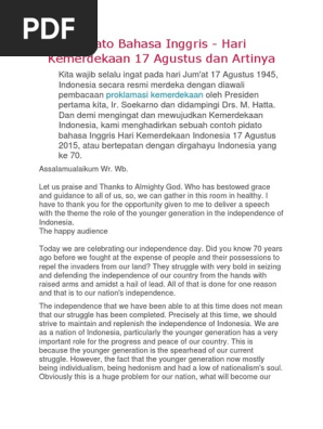 Pidato Bahasa Inggris - Hari Kemerdekaan 17 Agustus dan Artinya