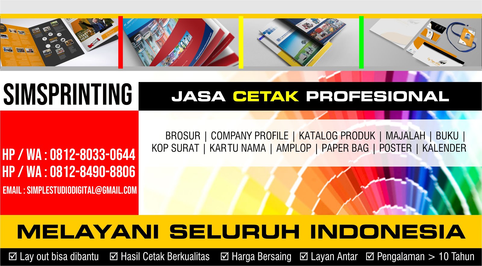 melayani segala macam barang cetakan, mulai dari brosur, box, folder, kartu nama, kop surat, amplop sampai paper bag harga cetakan dite