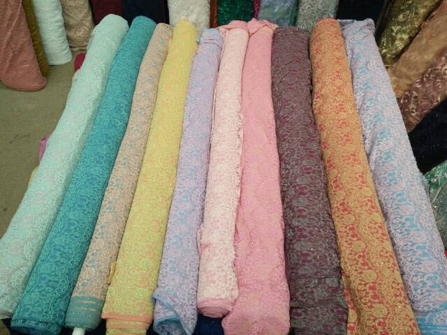 Bahan kain Brokat Renda Gliter / Renda pinggiran / kain brokat (harga/m) | Shopee Indonesia