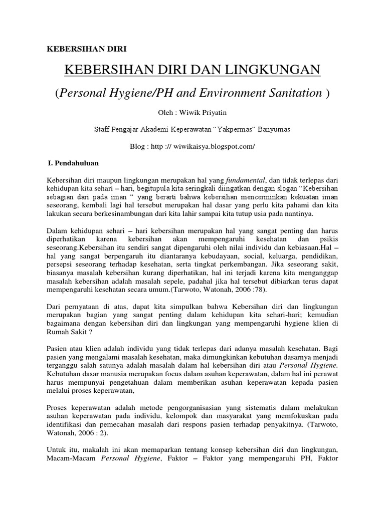 Kebersihan Lingkungan Sekolah BAB I PENDAHULUAN BAB II PEMBAHASAN