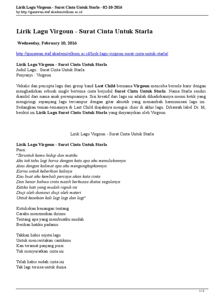 Lirik Lagu Indo - Surat Cinta Untuk Starla - Virgoun - Wattpad