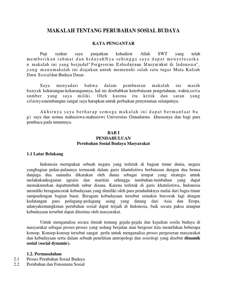 Makalah Tentang Perubahan Sosial Budaya: Kata Pengantar