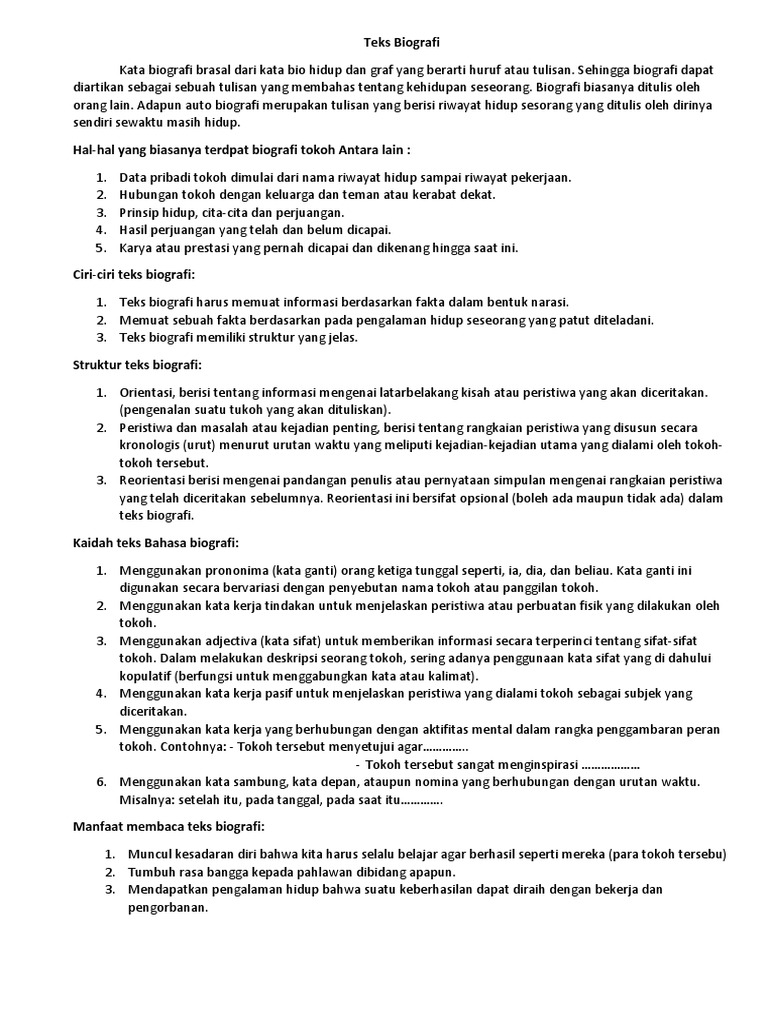 Pengertian teks biografi menurut para ahli dan ciri lengkap