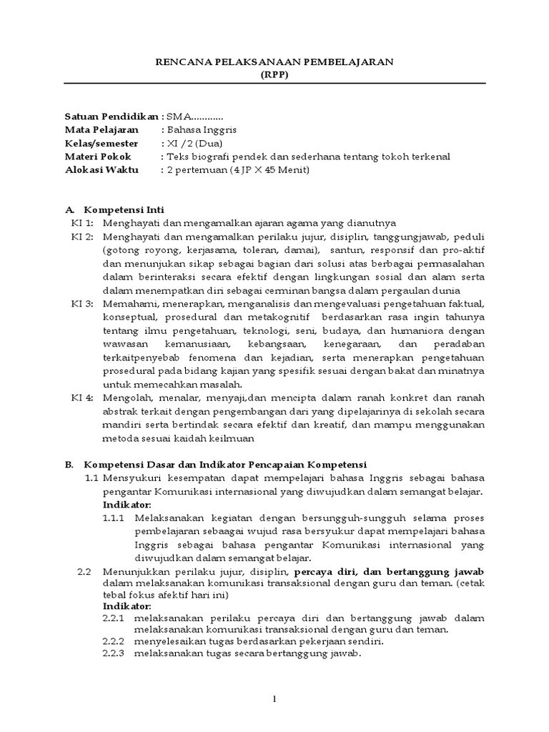 GURU BERBAGI | RPP Bahasa Inggris Teks Biografi Kelas XI SMK