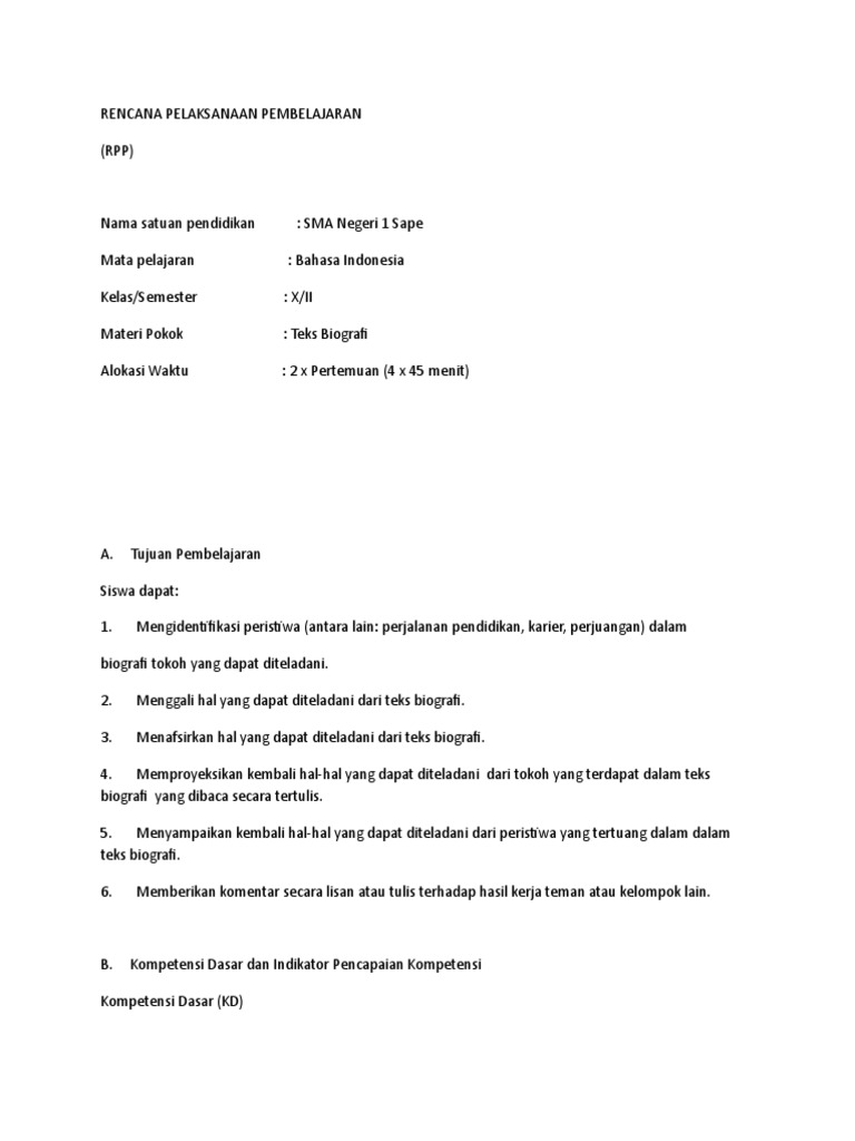 RPP TEKS BIOGRAFI KELAS X SEMESTER 2 DAN MATERI PEMBELAJARAN TEKS BIOGRAFI ~ ZUHRI INDONESIA