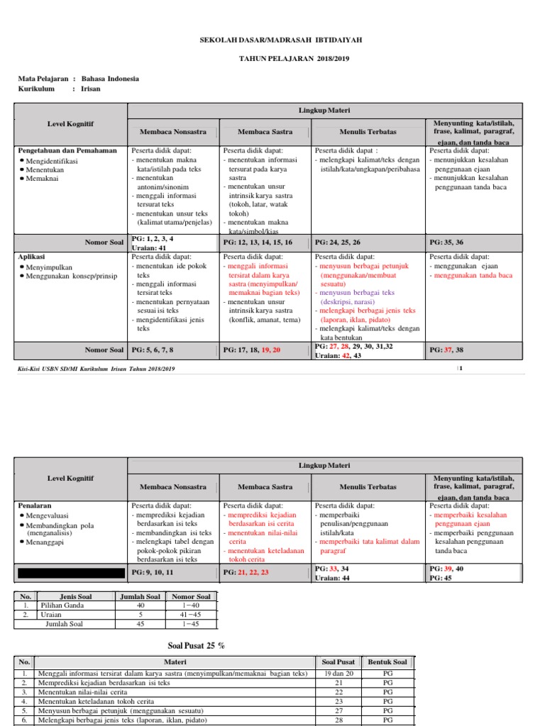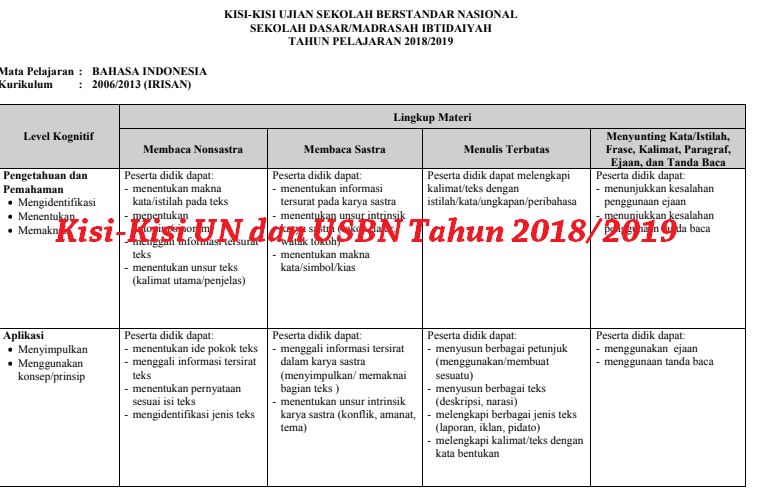 BEDAH KISI-KISI USBN 2019 SD/MI MATA PELAJARAN BAHASA INDONESIA TAHUN PELAJARAN 2018/2019 - Mariyadi.com