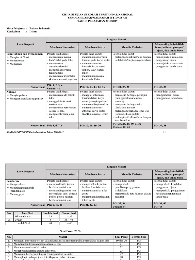 Bedah Kisi-Kisi Usbn 2019 Sd/Mi Mata Pelajaran Bahasa Indonesia Tahun Pelajaran 2018/2019 | PENDIDIKAN WAJIB