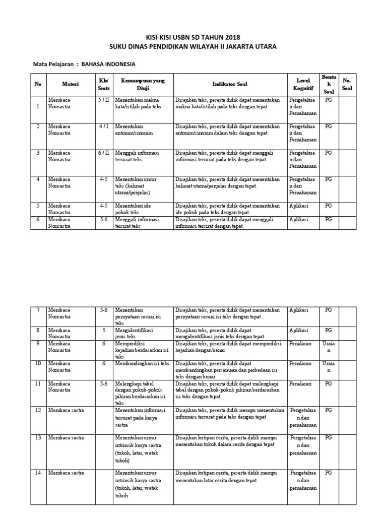 1.Kisi -Kisi Usbn Sd Bhs Ind 2018 Sudindik 2 Ju