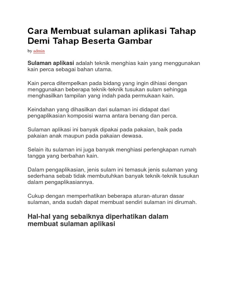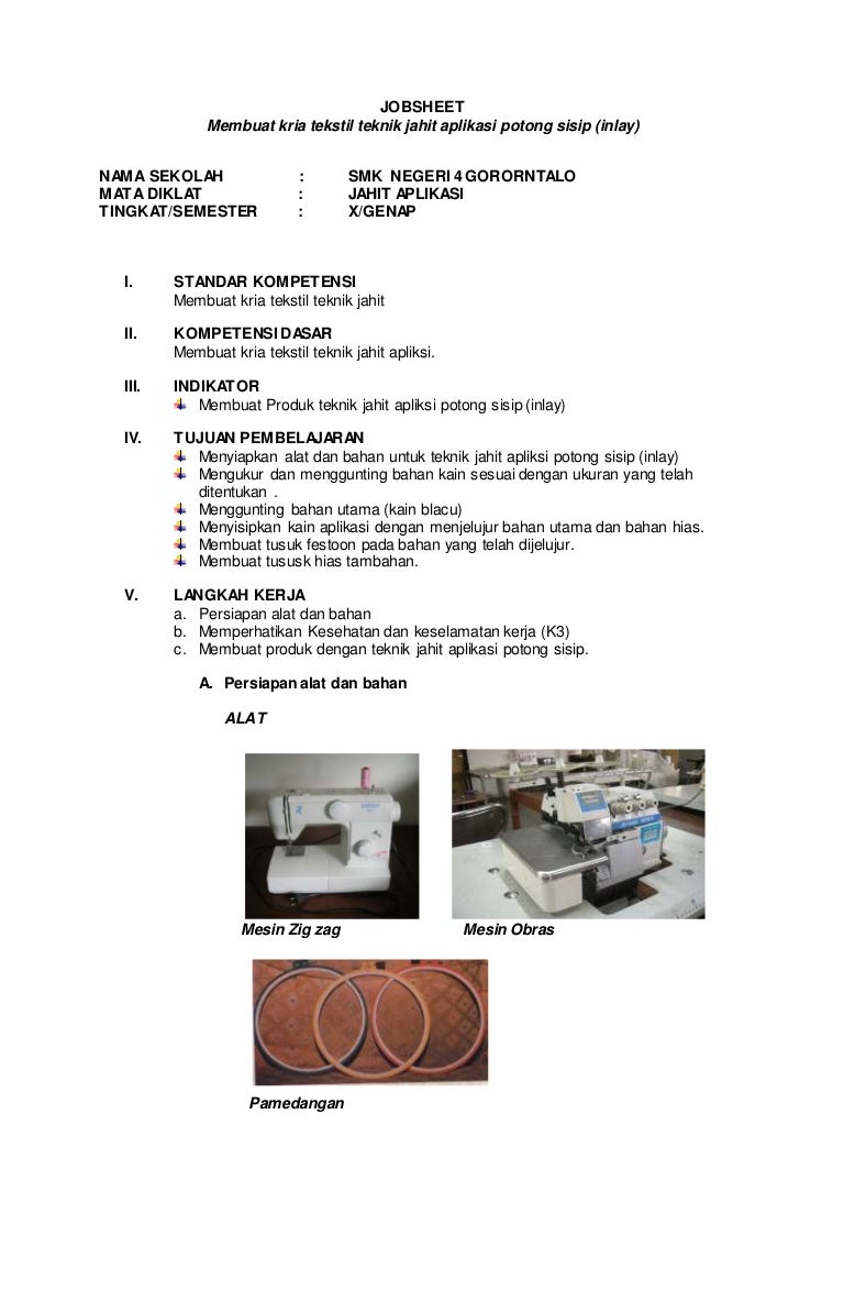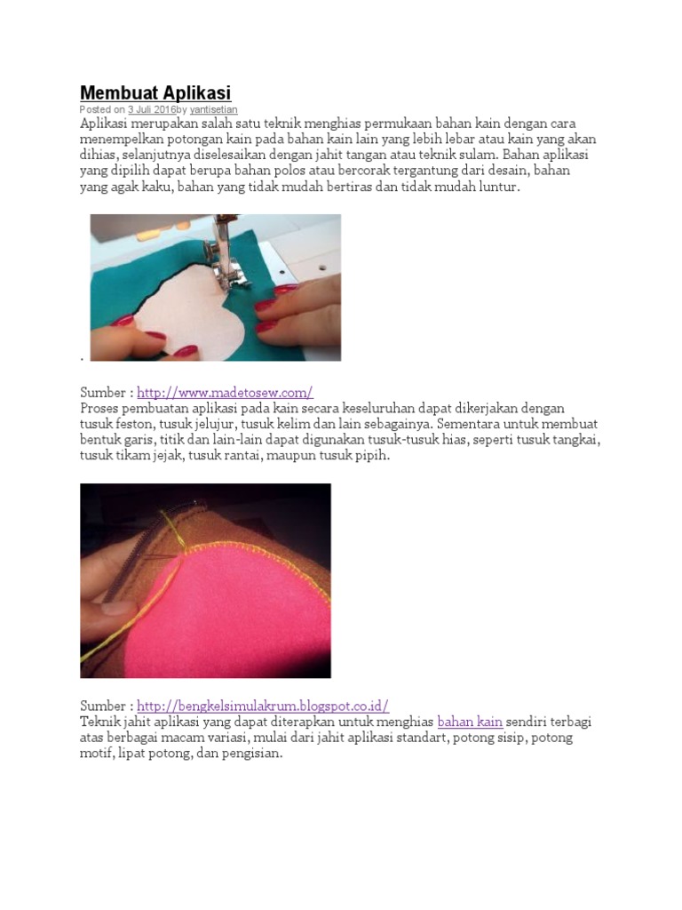 DOC) JAHIT APLIKASI adalah sebuah kegiatan menyambungkan dua lembar | jaya saenal - Academia.edu