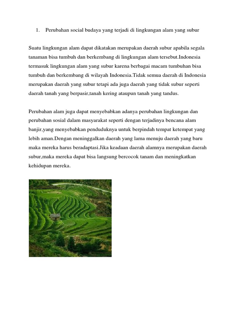 Perubahan Social Budaya Yang Terjadi Di Lingkungan Alam Yang Subur