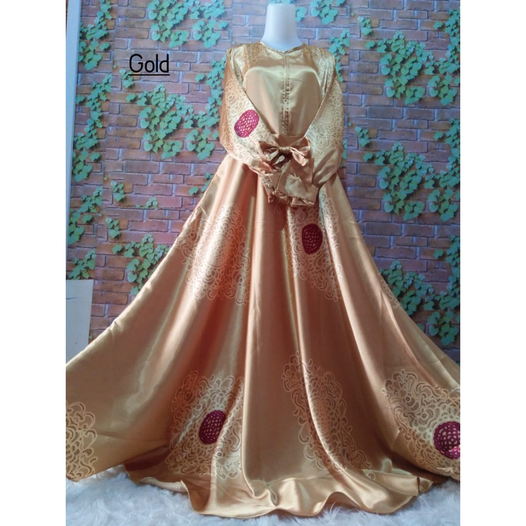 Gamis satin GOLD dress mewah pesta kondangan umbrella busui maxmara kilap limitted modis muslim | Shopee Indonesia