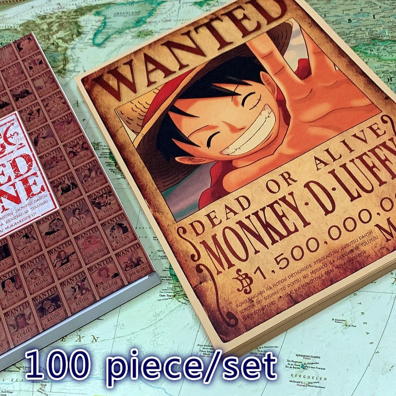 New Gift Box Vintage Kraft Paper One Piece Luffy Wanted Posters Anime Poster Interior Bars | Shopee Malaysia